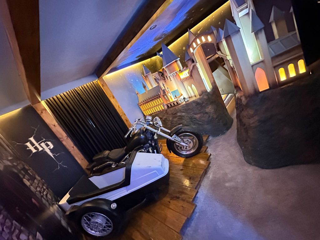 O cantor não poupou detalhes: uma sala de jogos leva o tema preferido de Mioto, Super-Heróis, enquanto um espaço especial para os pequenos é totalmente inspirado em Divertidamente. Para criar uma experiência ainda mais real, a equipe da JujuDiCasa chegou a colocar uma moto dentro do quarto de Harry Potter, garantindo que a decoração impressione qualquer visitante.