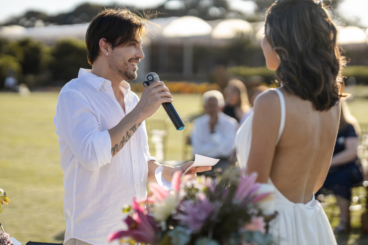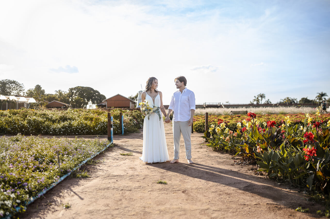 A cerimônia intimista e restrita para familiares aconteceu em Holambra, interior de São Paulo, nesta quinta-feira, 27 de novembro. A celebração marcou também o aniversário de nove anos de relacionamento do casal. Foi realizada na Fazenda Macena Flores, cenário que reforçou o clima romântico do evento. A decoração floral impecável ficou por conta da decoradora holambrense Yasmin Sandrini, que trouxe leveza, elegância e um toque natural aos espaços.