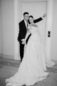 Maria, por sua vez, brilhou com um vestido maximalista, inspirado em princesas, complementado por uma mantilha de origem latina que emoldurava seu rosto. “O vestido me fez sentir mais noiva que a aliança. É como a Cinderela faz parecer no filme: não dá vontade de tirar”, diz, rindo. A beleza clean, com cabelo preso e maquiagem natural, destacou o vestido, enquanto luvas vitorianas adicionaram um toque de tendência. “Queria algo que marcasse, mas que eu pudesse olhar daqui a anos e rir, como minha mãe falava das mangas bufantes dela.”