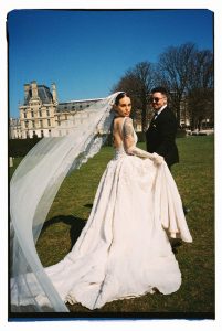 O ensaio fotográfico em Paris, cidade escolhida por sua beleza atemporal, capturou essa essência com elegância. “Queríamos algo que fosse bonito pra sempre, porque vamos ficar velhinhos vendo essas fotos”, conta Maria. As locações, selecionadas cuidadosamente para evitar clichês turísticos, e os looks clássicos – equilibrados pelas tatuagens marcantes do casal – criaram um contraste que reflete sua identidade: rebeldes, mas livres para abraçar a tradição quando ela ressoa com seus corações. As alianças Cartier, que misturam o clássico parisiense com a modernidade nova-iorquina, são um símbolo dessa dualidade. “É subversivo sermos autênticos, amarmos quem queremos e ainda usarmos Cartier em Paris”, afirmam.