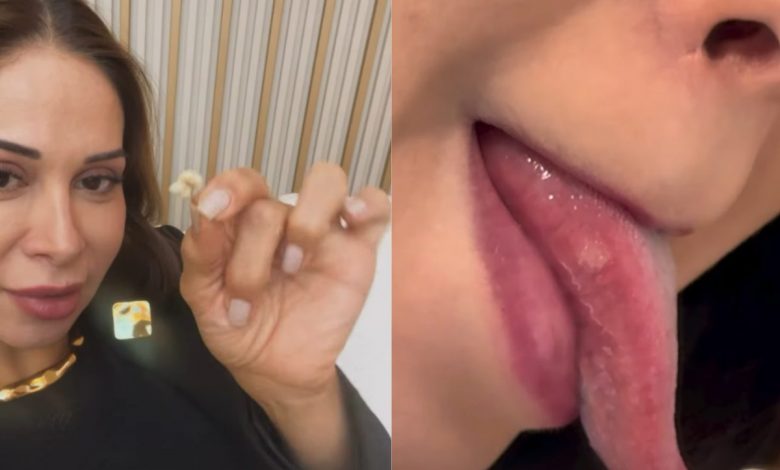 A empresária também revelou que perdeu um dente recentemente e enfrenta fortes dores na língua após complicações de um procedimento odontológico. “Caiu o dente da cirurgia antiga e o espaçador também. O problema é que, sem ele, o espaço ficou cortando a minha língua. Está machucando, sangrando, e não consigo nem falar direito”, explicou.