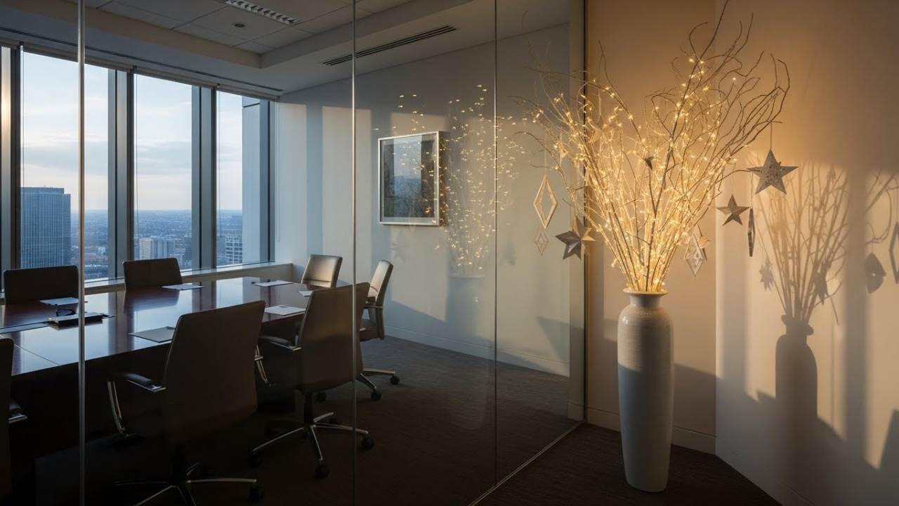 O Veredito: O Natal no escritório deve ser uma extensão da identidade da empresa. Ao optar por materiais nobres, luzes quentes e uma paleta sóbria, você transforma o ambiente de trabalho em um espaço de celebração e bom gosto.