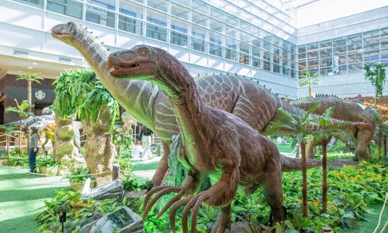 Com entrada gratuita, a exposição reúne 40 réplicas mecatrônicas de dinossauros e dragões com movimentos e sons realistas, que impressionam tanto crianças quanto adultos. Um dos destaques é o dinossauro de 15 metros de comprimento, instalado logo na entrada principal do shopping, recepcionando o público de forma imponente e divertida.
