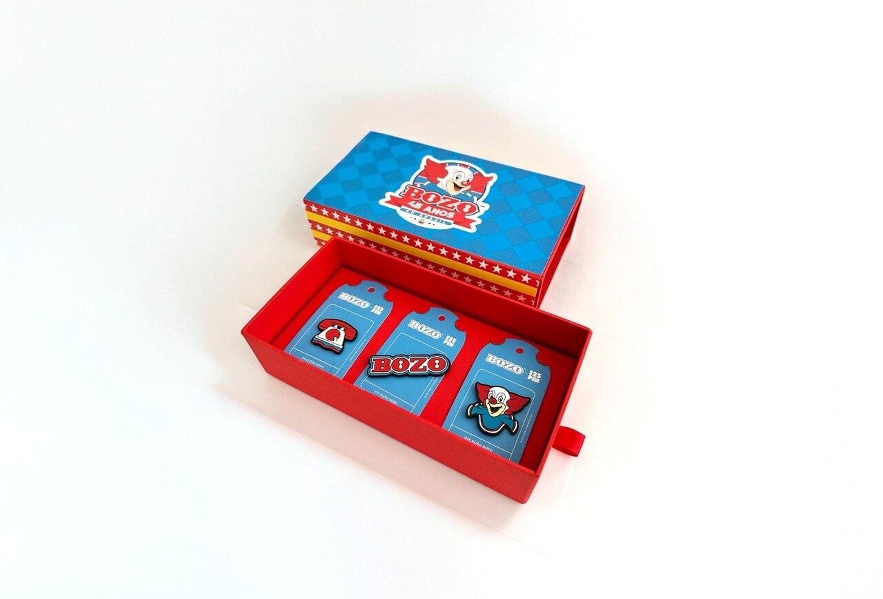 Além disso, a 123 PIN lança um kit especial com três pins temáticos do BOZO – o logo oficial, o telefone vermelho clássico e o rosto do palhaço. A marca, que já havia feito sucesso no ano passado com a coleção de pins “Silvinho e SBT”, agora homenageia um dos maiores ícones da TV brasileira. Os pins estarão disponíveis para compra no site da empresa em outubro e, a partir de novembro, em lojas de brinquedos e produtos colecionáveis.