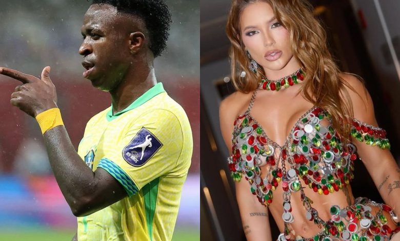 Vini Jr. chamou atenção nas redes sociais nesta sexta-feira (10/10) ao publicar um vídeo de comemoração de gol da seleção brasileira, em partida contra a Coreia do Sul, vencida por 5 a 0. Na postagem, o atacante do Real Madrid comemorou o tento mandando beijo para a câmera e escolheu como trilha sonora a música “Eu vou na sua casa”, de Felipe Amorim — canção que se tornou viral no país graças à influenciadora Virginia Fonseca. Além disso, o craque incluiu um emoji de coração vermelho, despertando suspeitas de que a postagem teria sido uma indireta à ex-namorada.